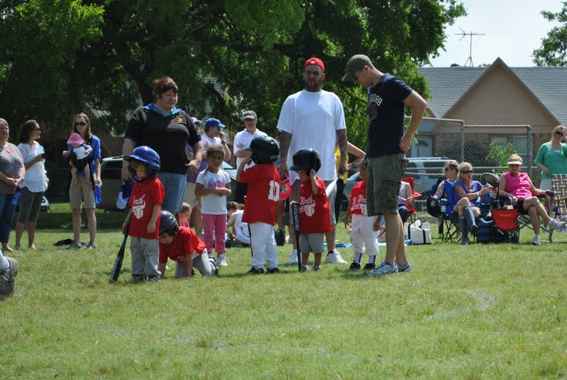Peter is loving his tee-ball experience. Here are some great photos that my sis took at one of his recent games. You can see him above in the grey shorts, about to enter the pile-up. :)